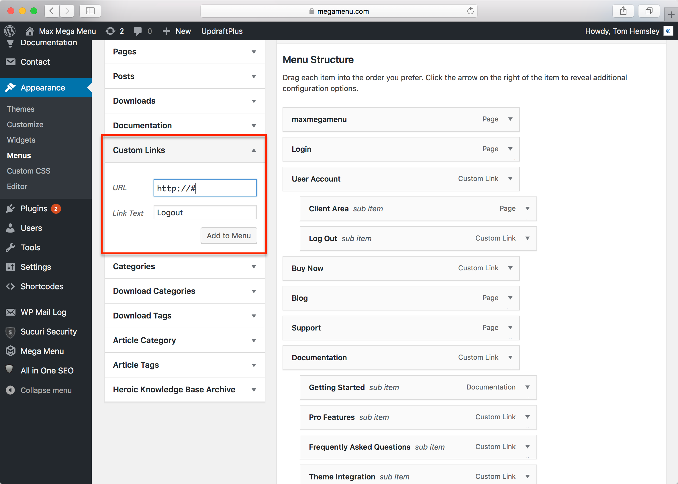 How to add a Logout Link to your menu