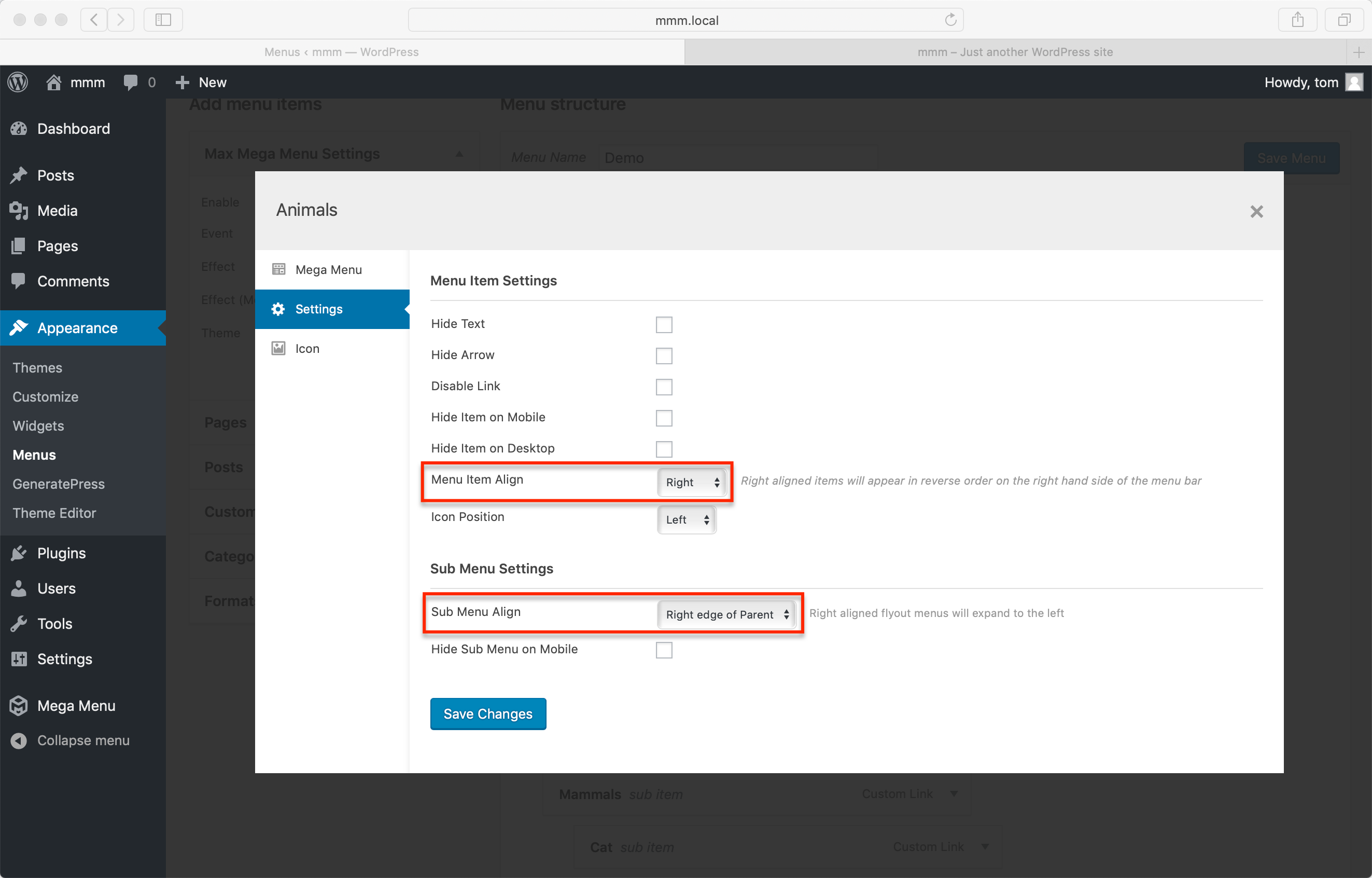 - Menu Item Align: Right