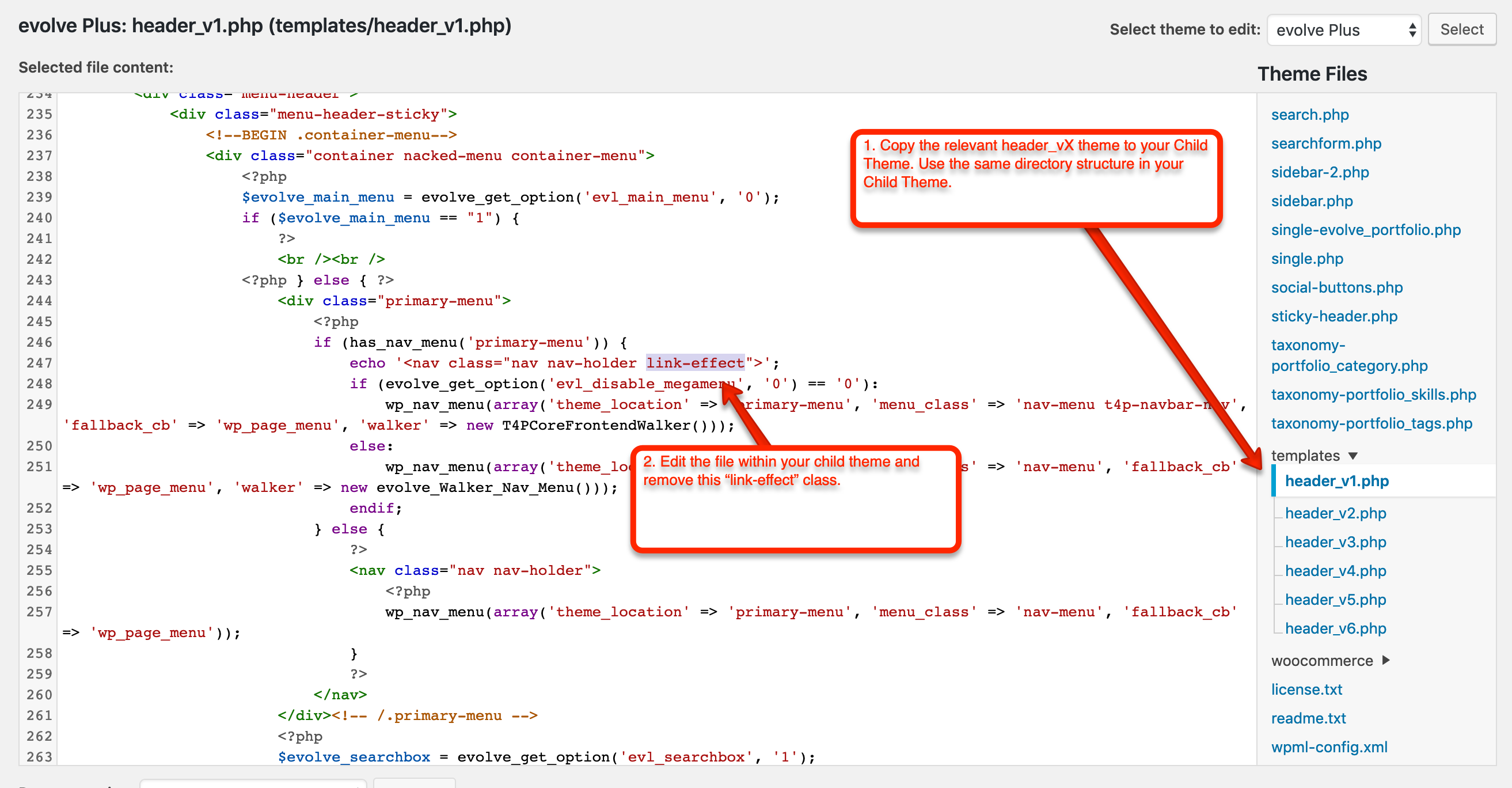 Go to Appearance > Theme Options > Header. Scroll down to “Choose Header Type”. You will see 6 header options. The first option is “header_v1”, the last option is “header_v6”. Make a note of which header type you have selected as you will need this in step 2.
