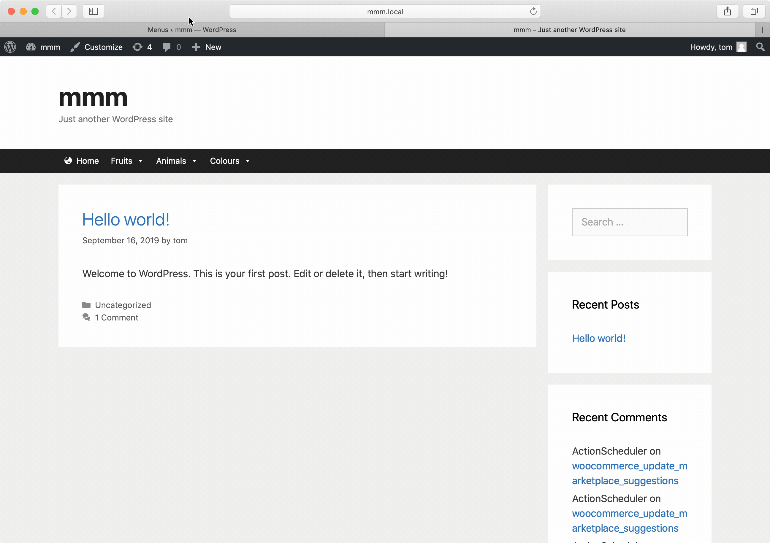 In the screenshot below we’ve set up a standard menu with a single top level item (Fruits) and 7 sub items (Kiwi, Orange etc).