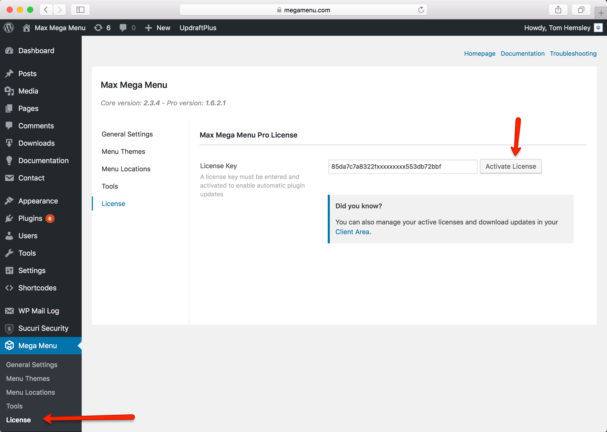In order to get updates for Max Mega Menu Pro, you’ll need to activate your licence key.