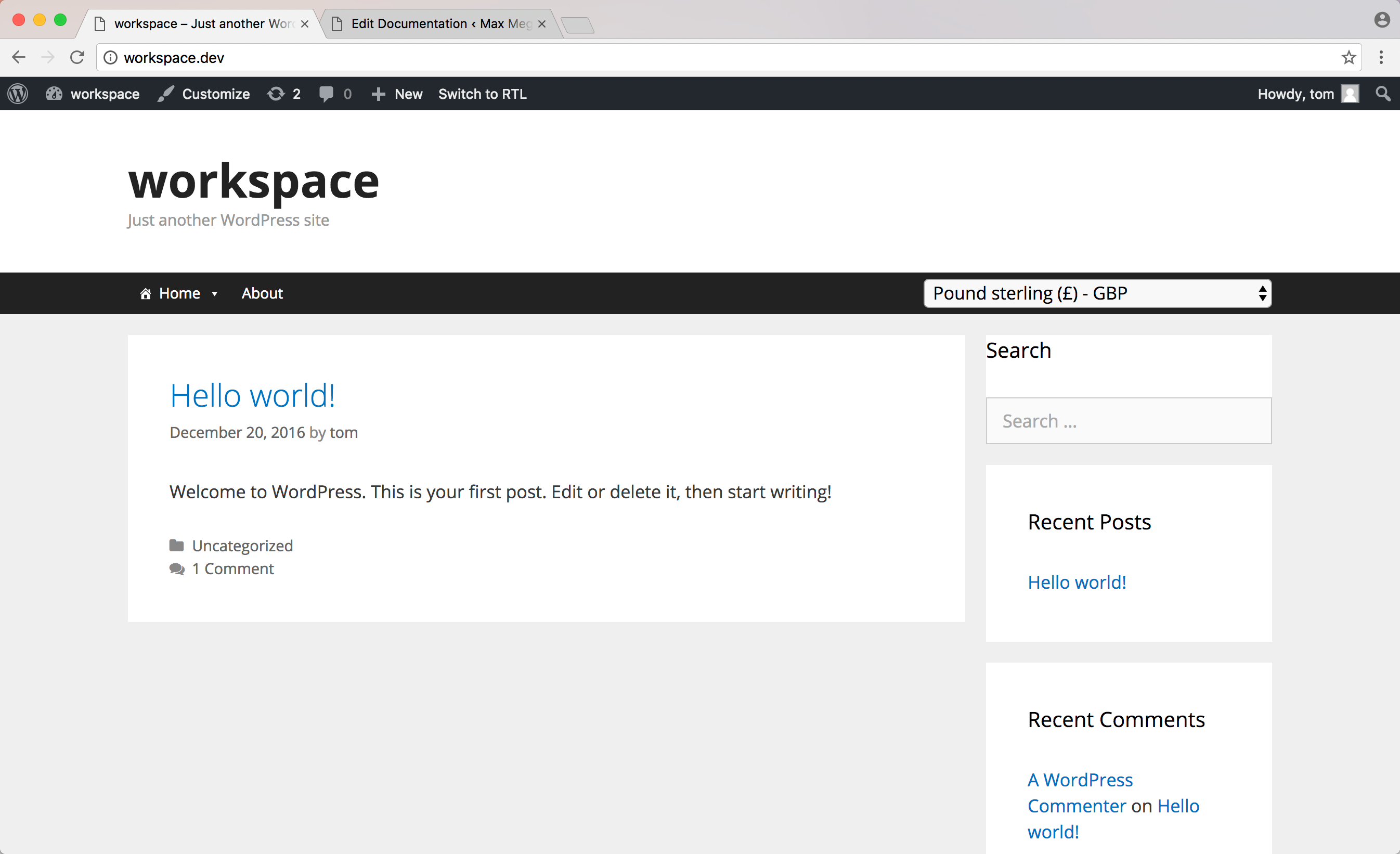 For the purposes of this demonstration, we’ll use the [currency_switcher] shortcode. This shortcode is available if you are using the WPML WooCommerce Multi Lingual plugin.