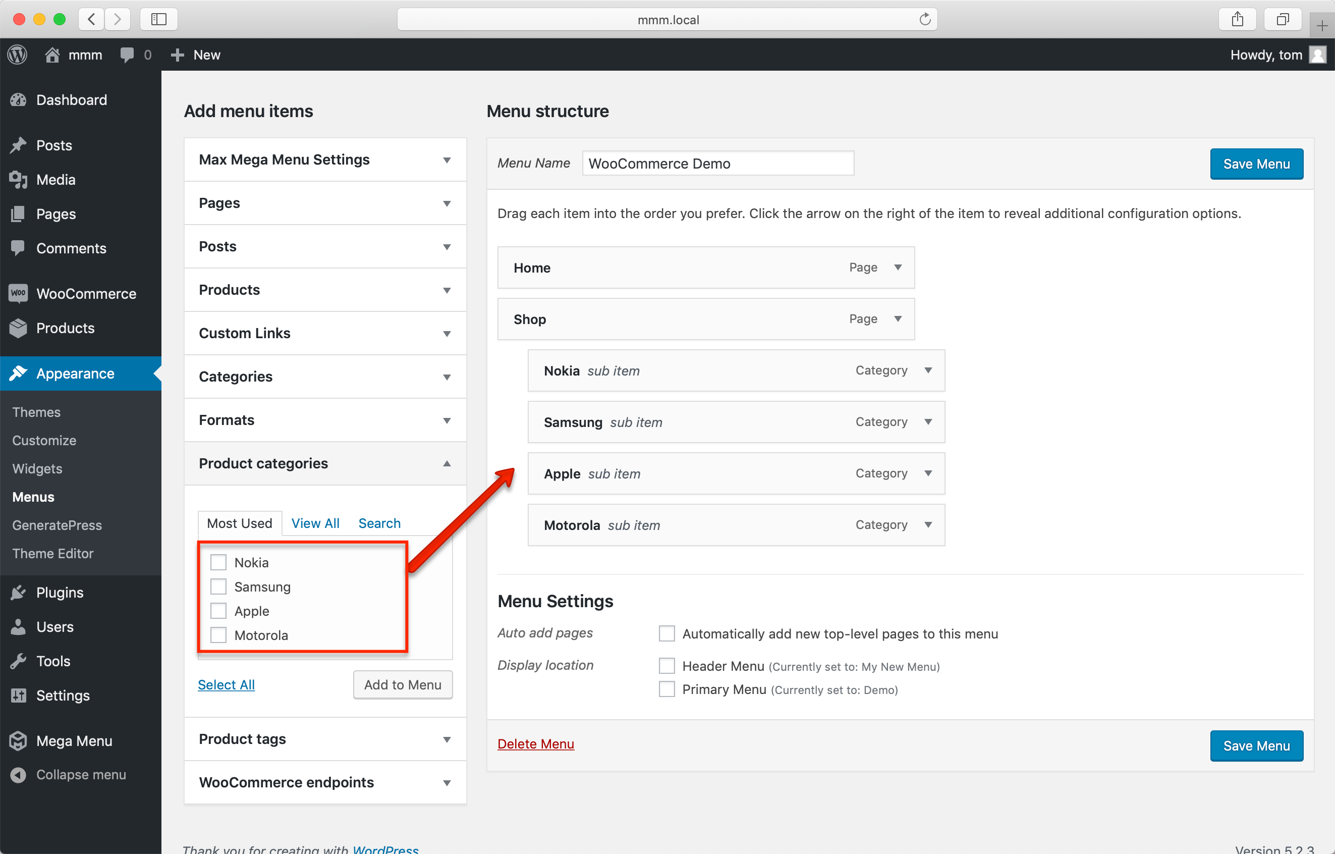 In this article we will go through the steps required to show WooCommerce categories within your menu.