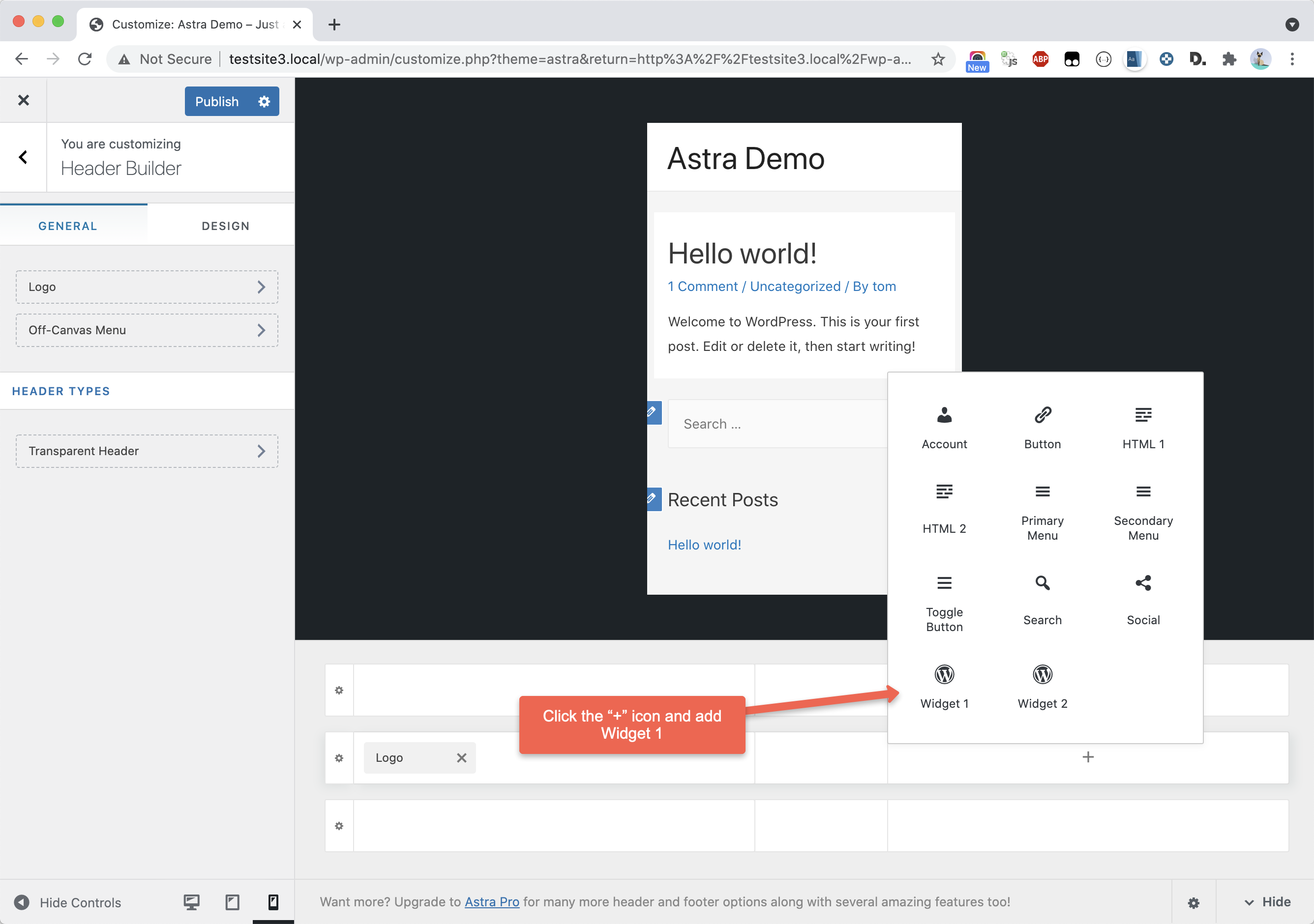 Next, add the “Widget 1” block to the layout: