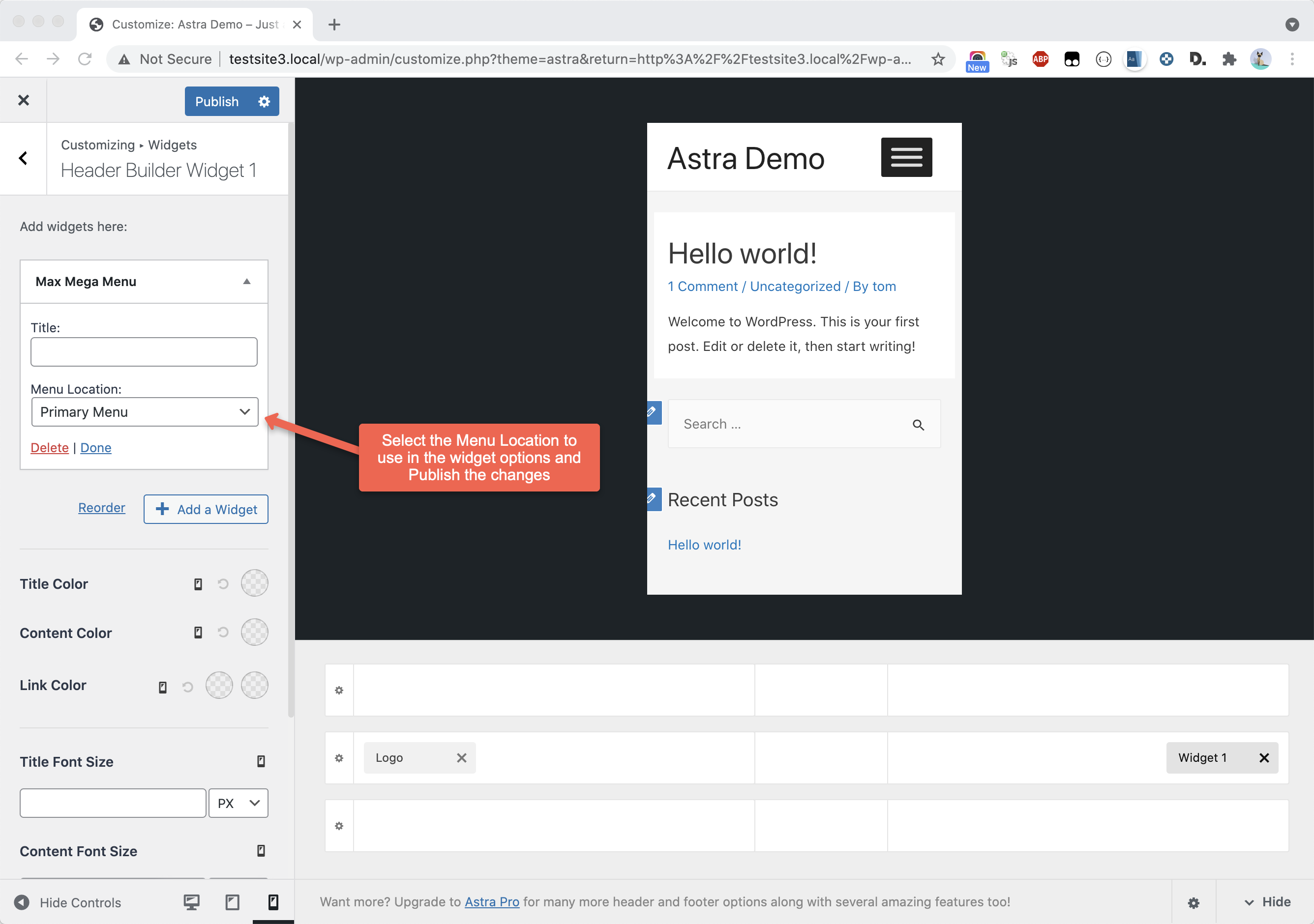 Choose the menu location to display for your mobile menu in the widget settings: