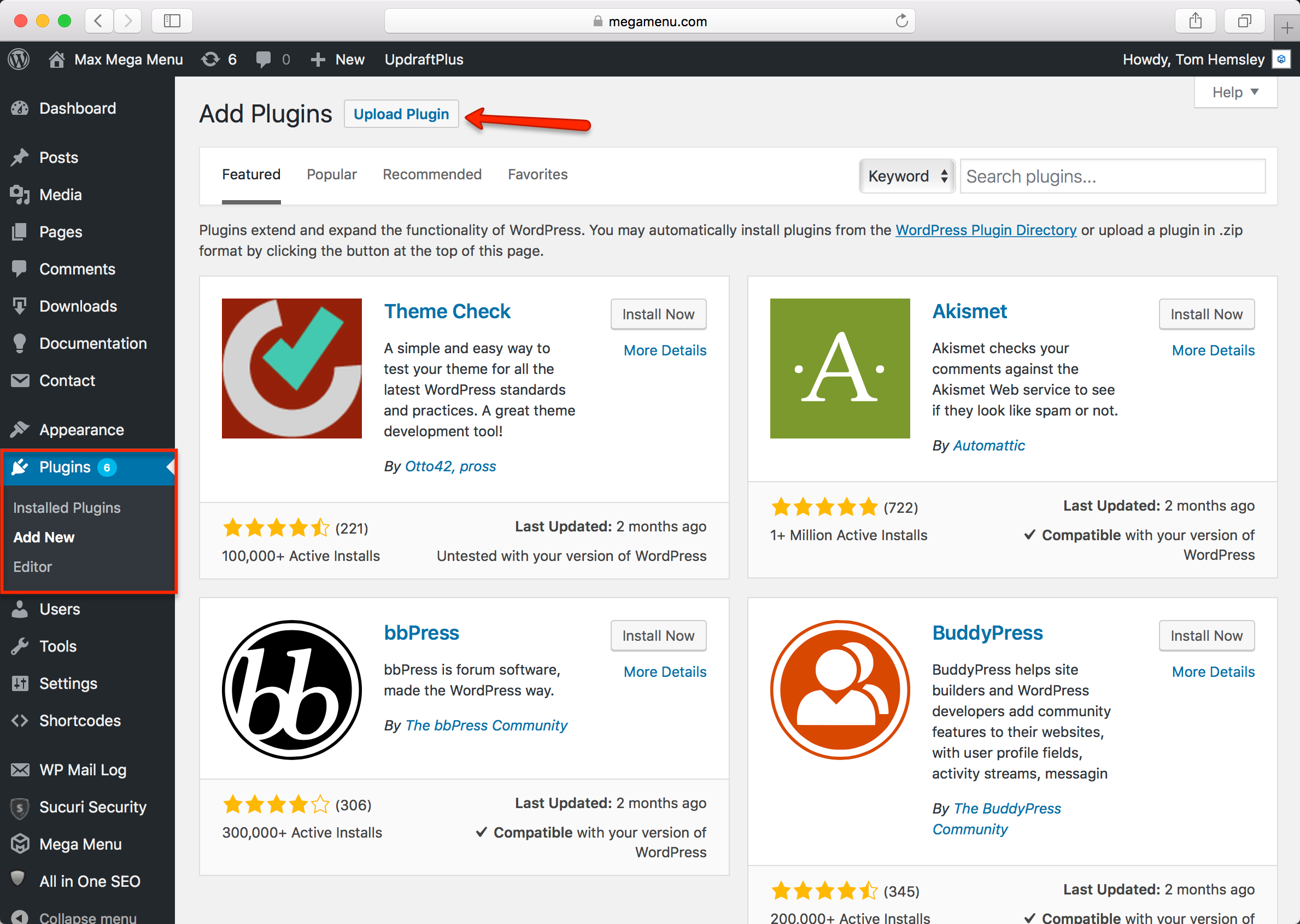 Log into your WordPress site, then go to Plugins > Add New > Upload Plugin: